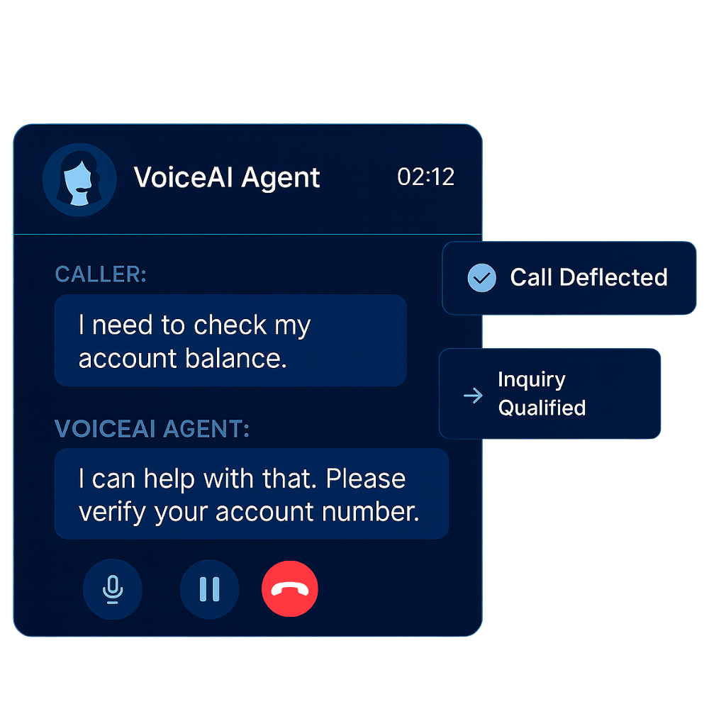 Deflect repetitive calls, qualify inquiries, and free up human agents for complex conversations.