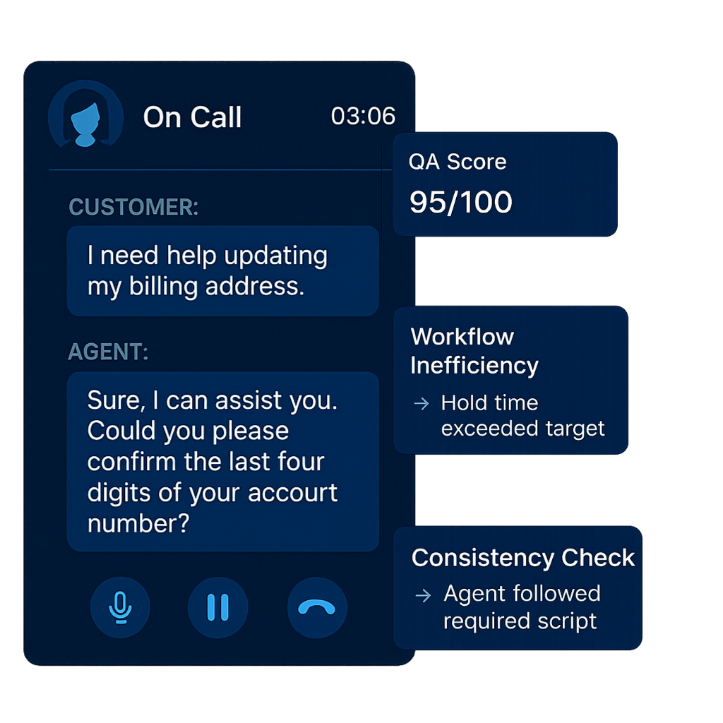 Score every call automatically, uncover workflow inefficiencies, and ensure consistent service quality.