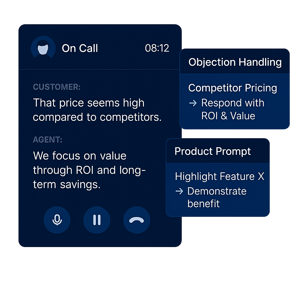 Deliver live objection handling, product prompts, and sales talk tracks that help reps close more deals while staying compliant.