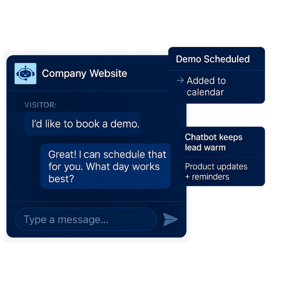Engage prospects instantly on your site, book demos, and keep leads warm 24/7 without human intervention.